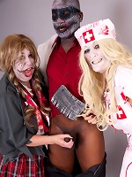 All three headed to the dining room to enjoy the dinner. The evening was going by fast. Talking, laughing and joking women didn't notice as the bottle got empty and Mike opened another one. Yesterday, when Jackie told him that Sam was coming for dinner, he got a plan. 10 years ago he met those 32-year-old MILFs at a party and fell in love with one of them though she didn't pay much attention to him. So in time he switched over to another one and eventually married her. But today was the day. Today he was going to get what he's been craving for 10 years. His hands were impatiently trembling while pouring more wine to his wife and her sexy friend. When they moved to the couch in a living room Mike turned on the music and invited his wife for a slow dance.